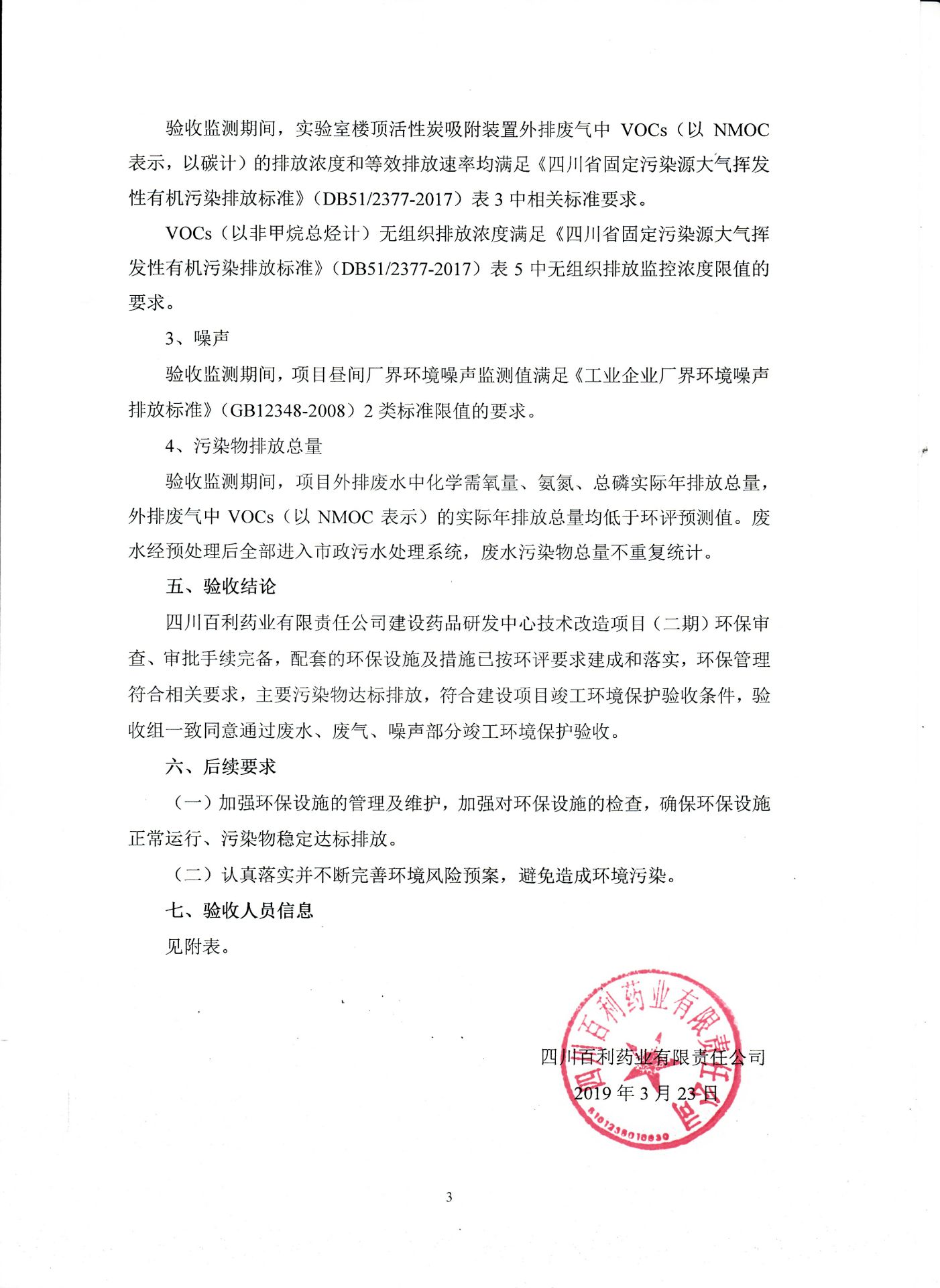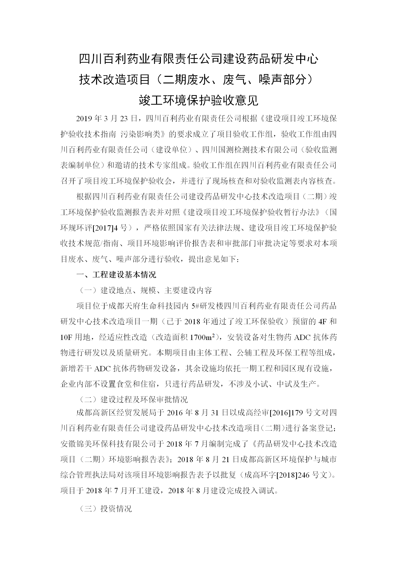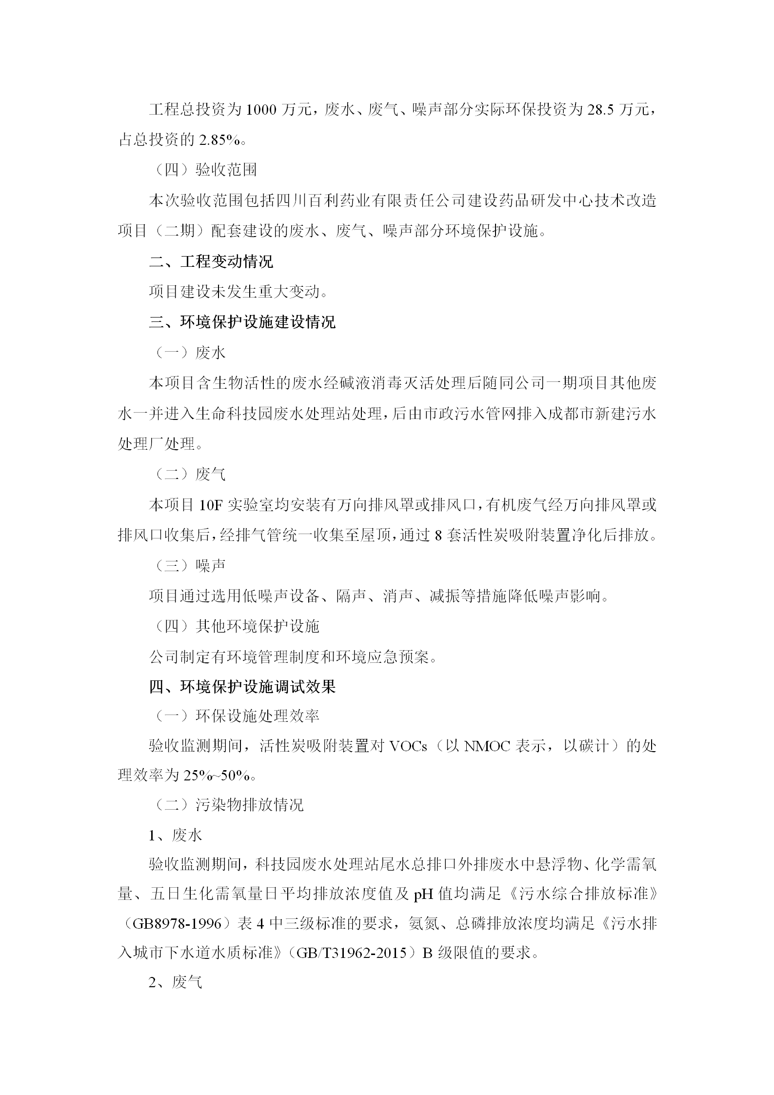 根据《国务院关于建设项目竣工环境保护管理条例的决定》以及环保部《建设项目竣工环境保护验收暂行办法》的公告(国环规环评[2017]4号)现将《四川海口志睿医疗信息科技有限公司有限责任公司药品研发中心技术改造项目(二期)竣工环保验收监测报告》及验收意见公示如下: